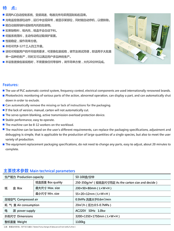 護膚品多功能自動裝盒機(帶自動折內(nèi)托折盒機)